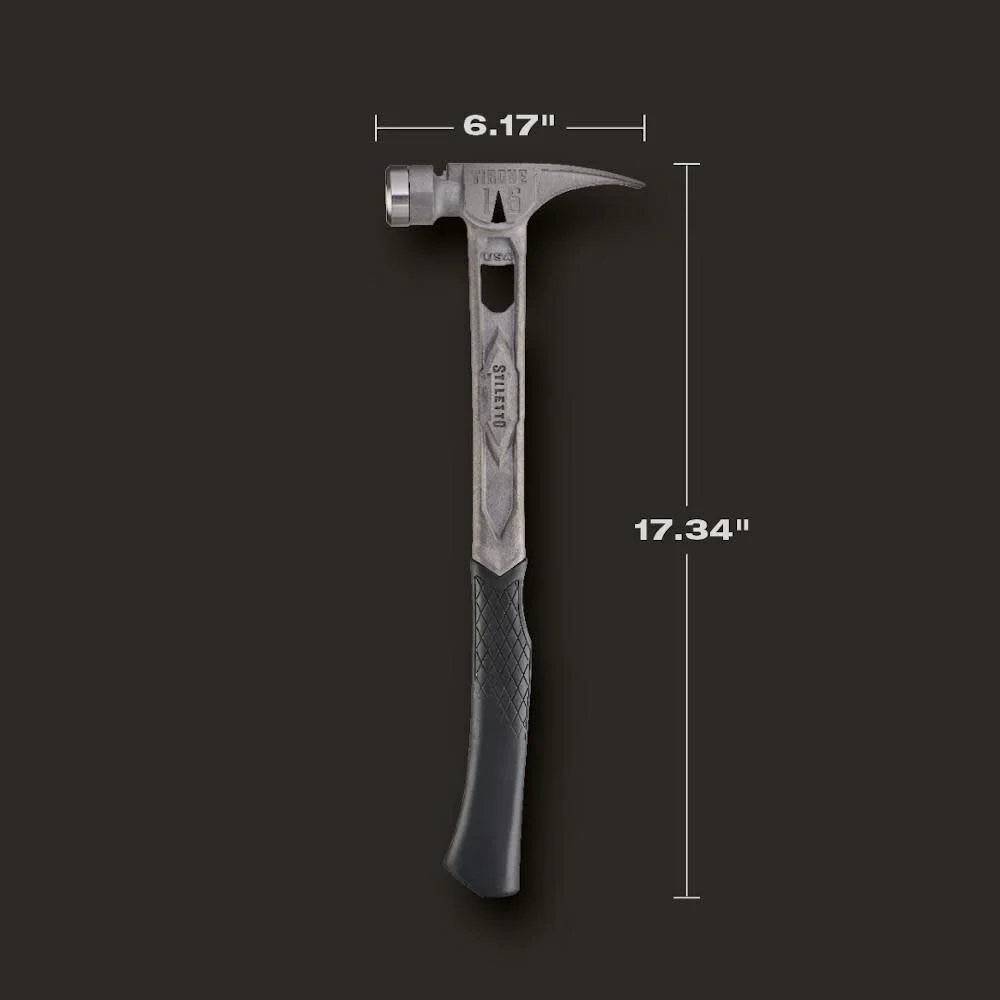 The STILETTO® 15oz TIBONE™ Hammer with Smooth Steel Face and Curved Handle is our most powerful and most durable hammer. This All-Titanium hammer is 45% less weight and hits like steel. The durable TIBONE™ design is best for framing and pulling nails. The 180° Side Nail Puller and Magnetic Nail Starter fit up to 16D and Duplex Nails. The TIBONE™ features a replaceable steel face and multiple grip colors, extending the life of the hammer and providing a personal touch.